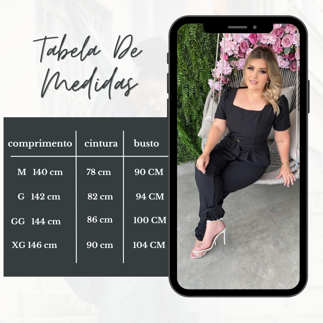 Tecido de Qualidade: Confeccionado em tecido Barbi, este macacão oferece um toque suave e um caimento impecável. A qualidade do material proporciona durabilidade e resistência, garantindo que você se destaque com elegância em diversas ocasiões.